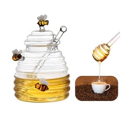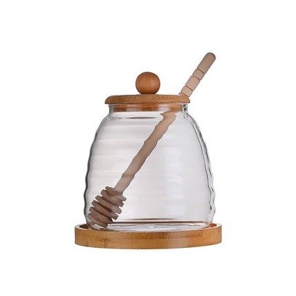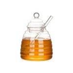 Keep honey fresh and easy to serve with this ribbed glass honey jar and dipper. Designed with a clear ribbed finish, it adds a modern touch to your kitchen or tea table. Perfect for honey, syrup, or jam.