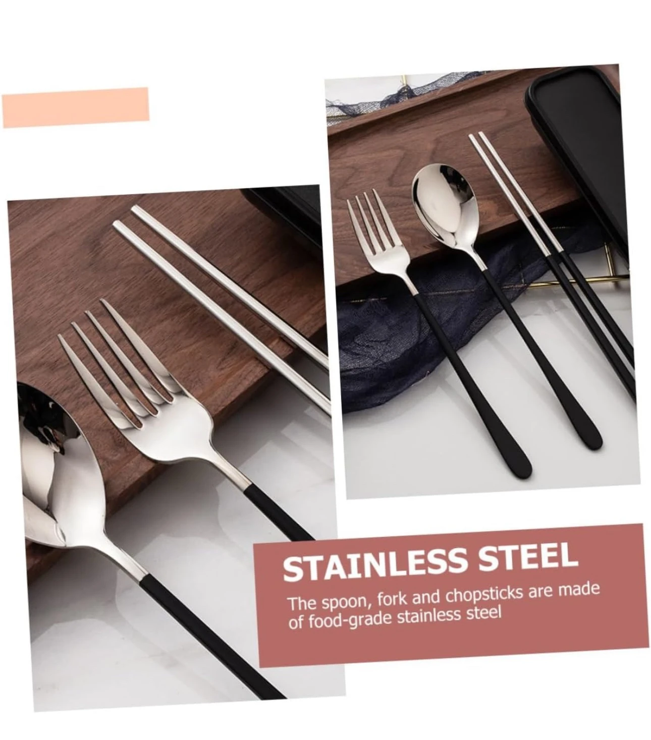 1 Set Portable Cutlery Camping Fork Spoon Metal Chopsticks