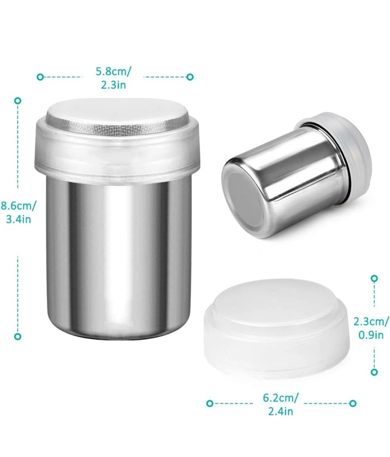 Stainless Steel Powder Shaker Duster with Lid, Fine Mesh Shaker Powder