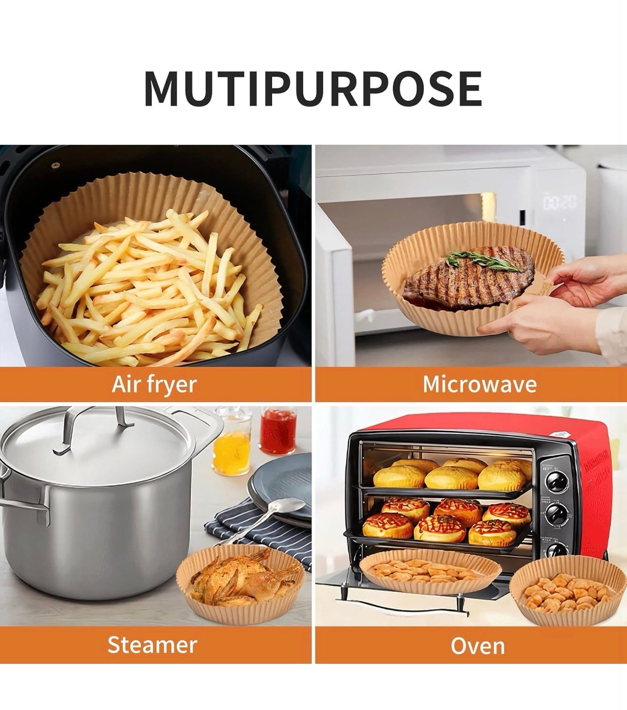 • Keep Your Air Fryer Clean: This round 9-inch air fryer paper liner is suitable for 5-10 QT air fryers. These disposable paper liners can effectively keep food residue away from fryer, just simply rest the paper on the tray and all the clean will be a breeze, and make it as clean as unused, saving time and effort.