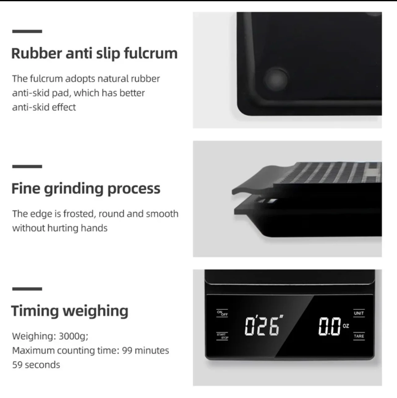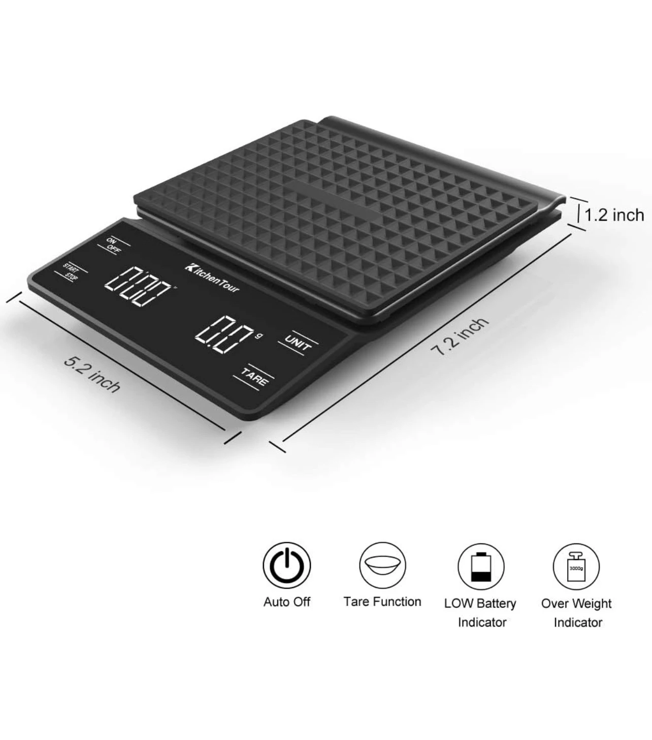 - 【Automatic timing】Our electronic coffee scale features automatic timing function for brewing coffee and timing to help you follow brewing recipes exactly and ensure consistency.