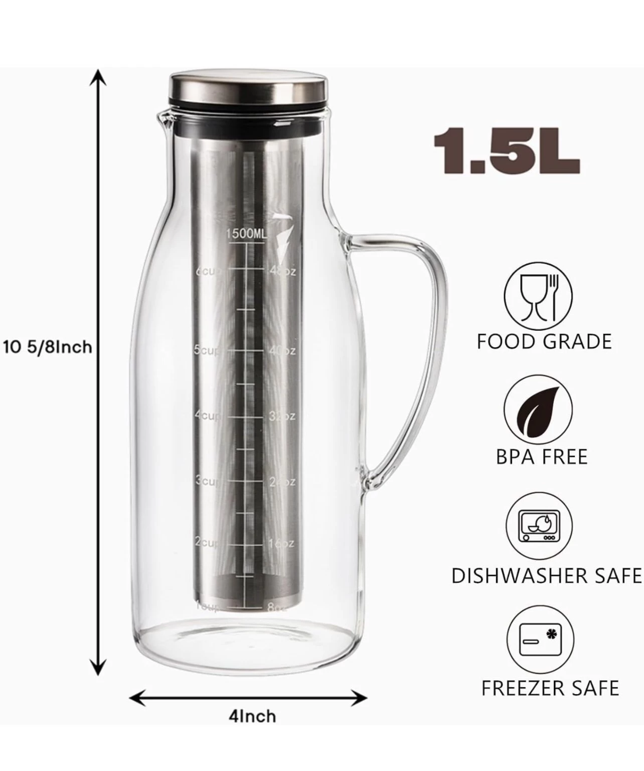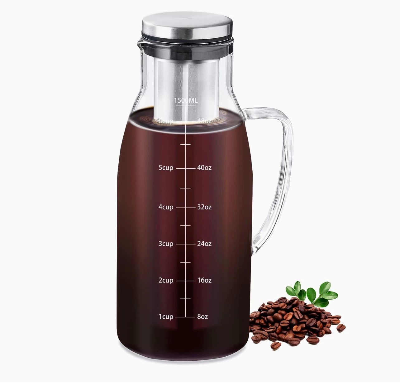 • Iced Coffee Maker with Airtight Lid and Removable Stainless Steel Filter, Cold Brew Pitcher For Coffee Iced Tea Maker, Glass Pitcher Carafe Pour Over Coffee Maker