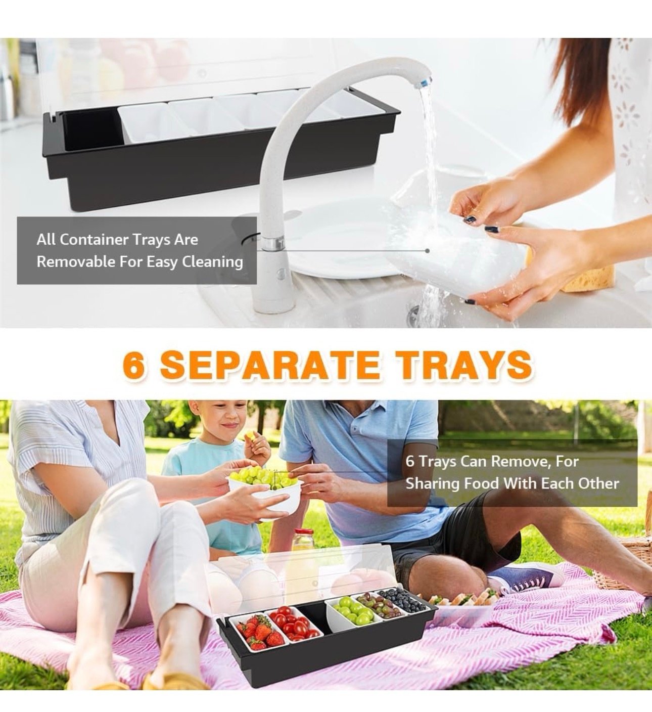 - Space saving and easy to clean:used this for toppings,very easy to prepare toppings,this way will be so much easer as to having so many different bowls/cups taking up space on your counter.and divider trays can be removed,it’s easy to use,store and clean