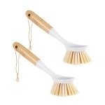 - Easy to Maintain: The handle hole & loop on this dish scrubber brush allows for easy hanging over the sink to keep it dry and clean. Please don’t use washing machine to clean the kitchen brushes to avoid damage the bamboo handle.