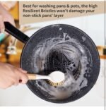 - Safe For Skillets & Pans: The cast Iron Cleaner brushes are Made from eco-friendly materials like bamboo and recycled plastic, this dish scrubber brush boasts an ergonomic design that provides both hand protection and a comfortable, non-slip grip. It’s safe to use on non-stick cookware and frying pans, and the built-in scraper helps remove stubborn stains with ease.