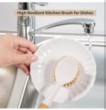 - Cleaning Cast Iron Skillet & Dishes with Easy: The TEZZ dish washing Brushes built-in Scraper and resilient & stiff bristles, it is perfect for scrub & cleaning dishes, pots & pans, skillets with ease and without damageing your cookware. The sturdy and bamboo handle is Eco-Friendly and comfortable to use while cleaning your kitchen.