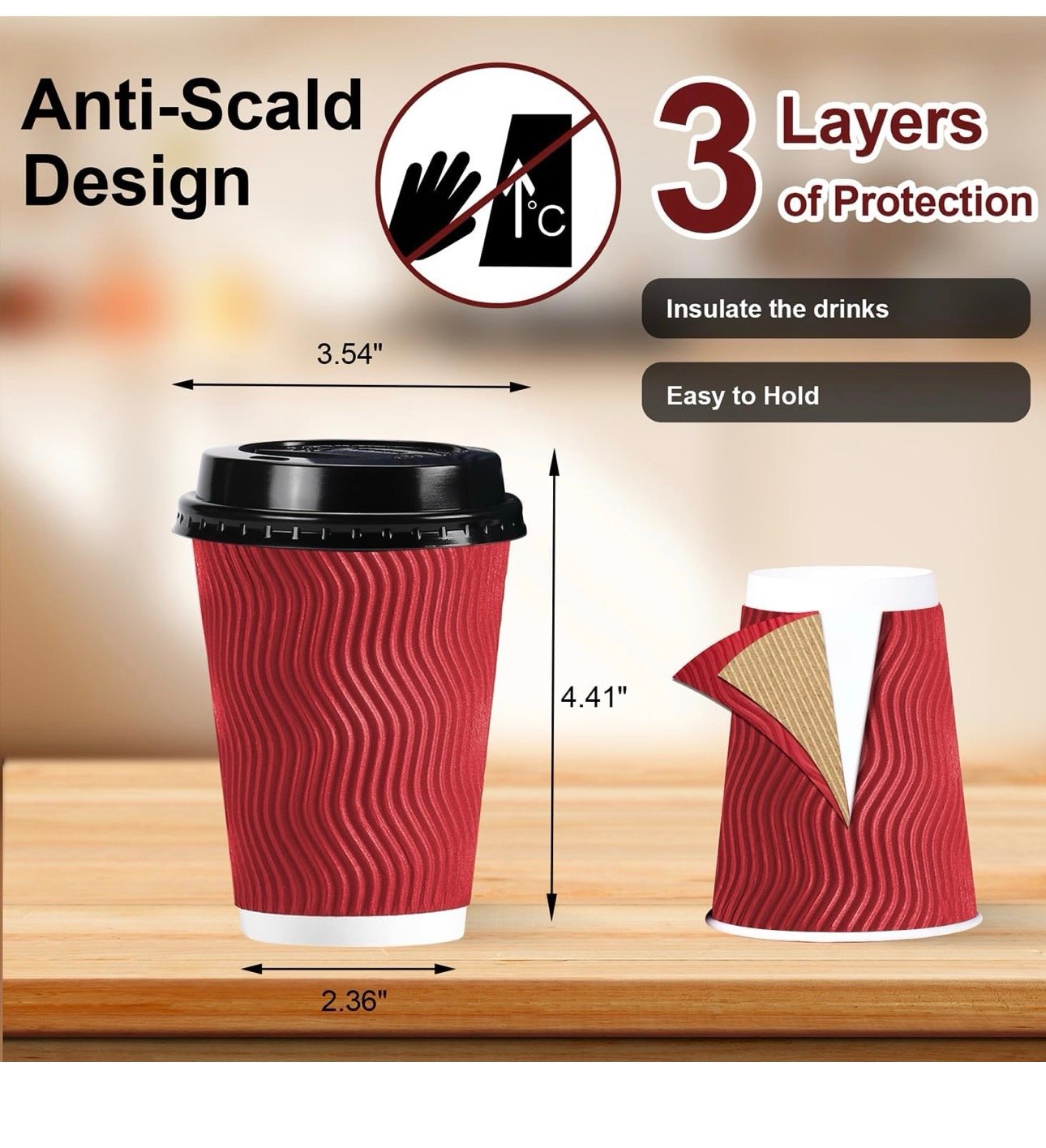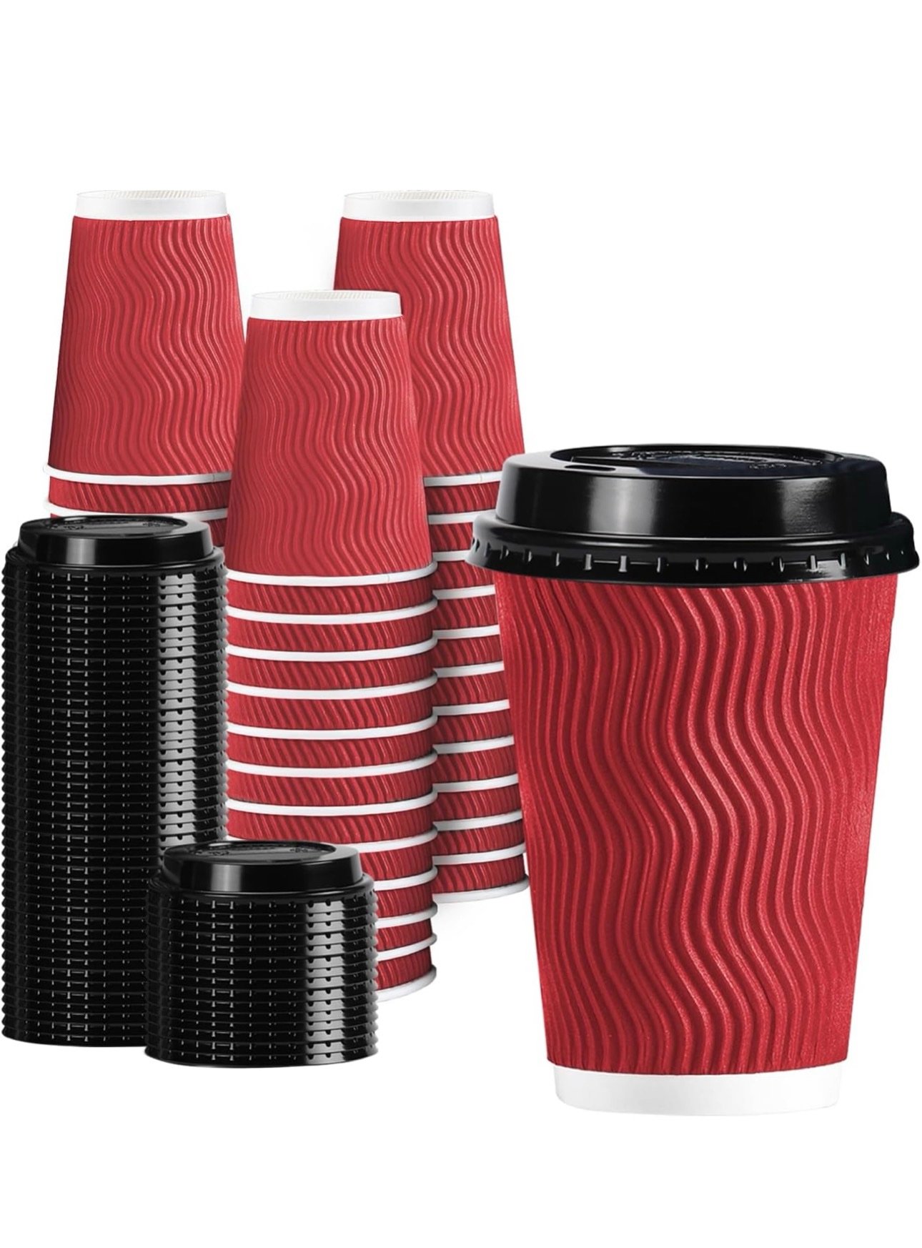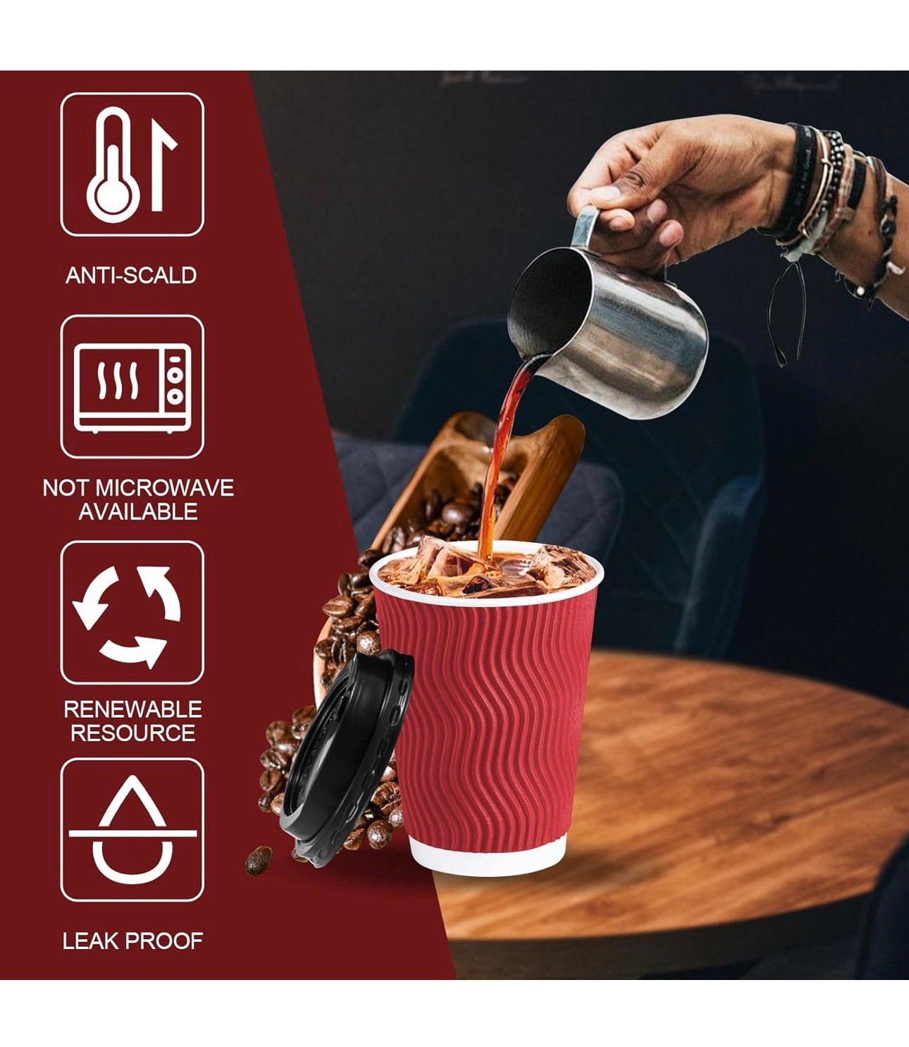 Be the first to review “Disposable Coffee Cups with Lids 25 Pack, Paper Insulated Corrugated Ripple Wall Cup for Hot Beverages with lids (Red)” Cancel reply