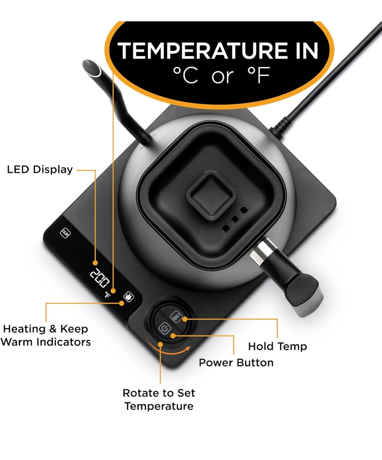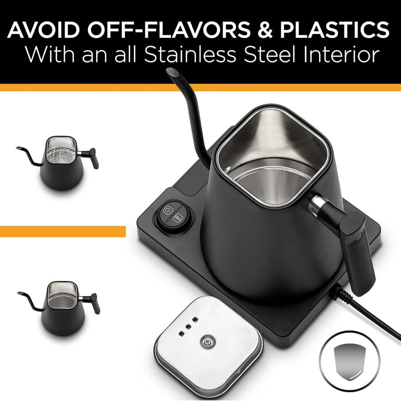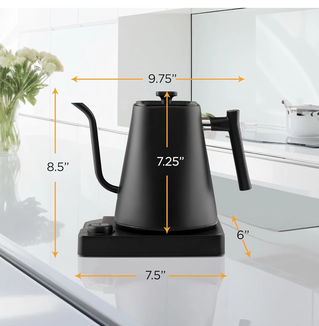 - Compact 1-liter Capacity: Perfect for those who seek efficiency, this gooseneck kettle is ideal for solo brews or intimate gatherings. Its size saves counter space without sacrificing performance, making it a smart choice for any size space–small or large.