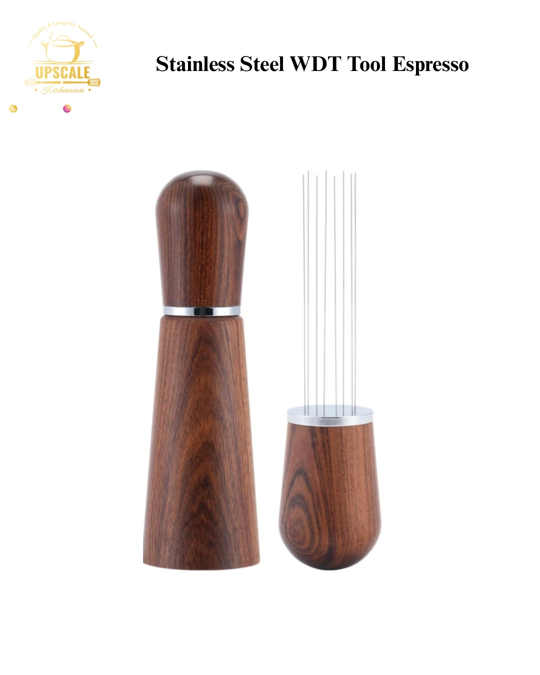 - NATURAL WOOD HANDLE AND STAND & STAINLESS STEEL NEEDLE- Our coffee stirrer handle is made of natural red rosewood and surface is highly polished. This wdt tool has a wood self-aligning stand that will catch your distribution tool even before your first shot of espresso.