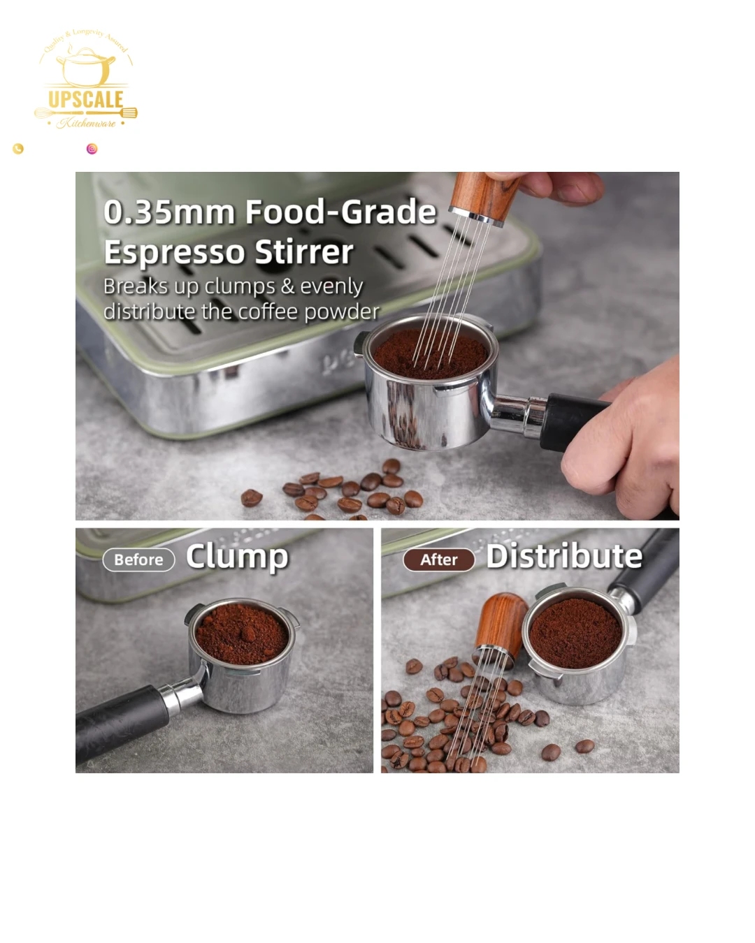 - EVEN ESPRESSO EXTRACTION-This espresso stirrer uses 4 fine needles, the barista stirs the coffee while it sits in the portafilter, it can can help evenly distribute coffee in the portafilter to promote more even extractions and better espresso.
