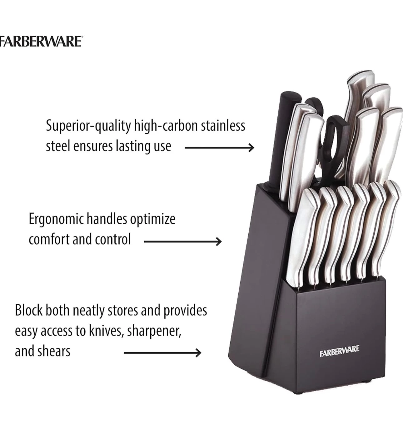 Be the first to review “Farberware 15-Piece High-Carbon Stamped Stainless Steel Kitchen Knife Set.” Cancel reply