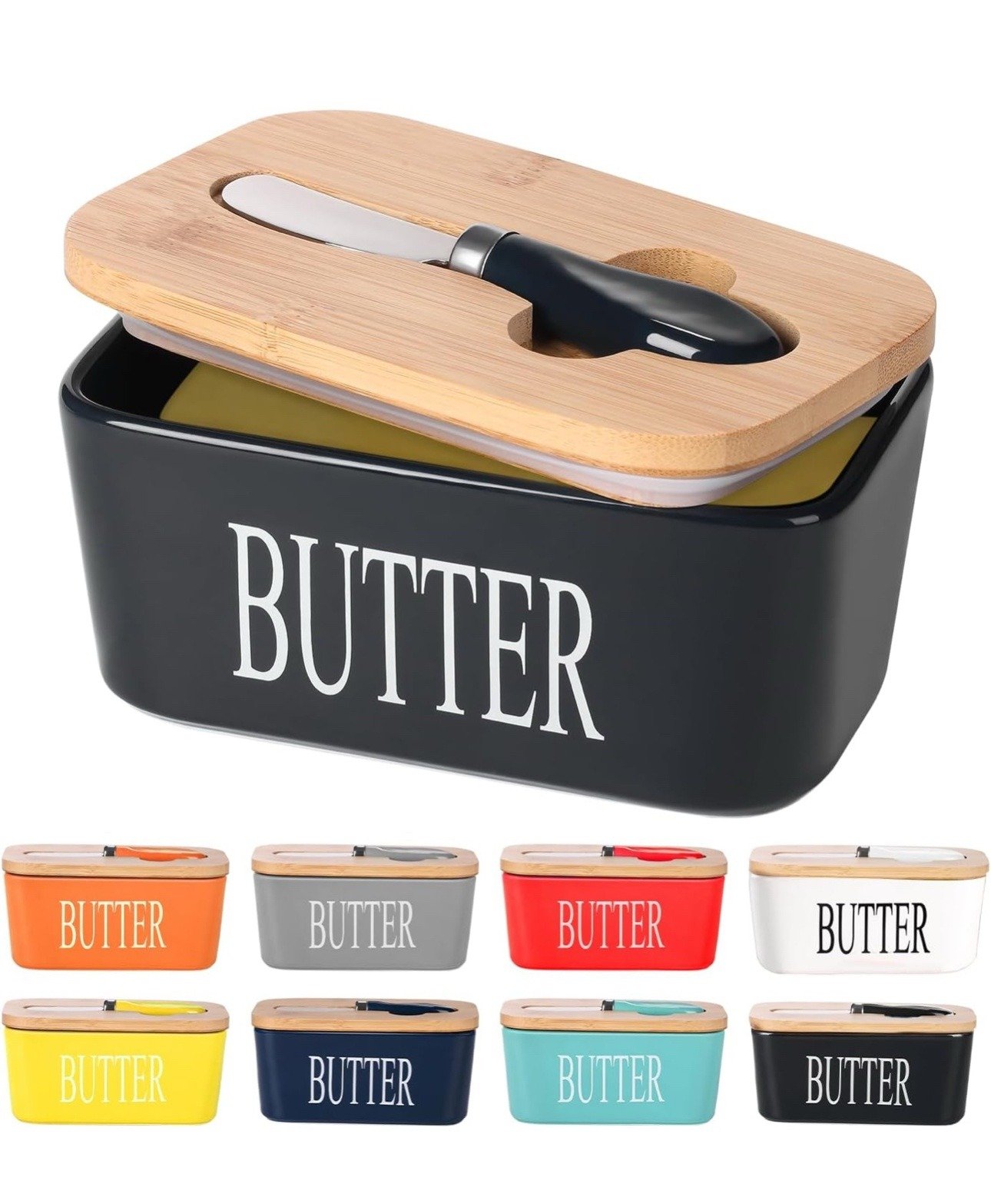 Be the first to review “Ceramic Butter Dish with Wooden Lid, with Stainless Steel Knife Spreader, Bamboo Cover and Silicone Sealing Ring” Cancel reply
