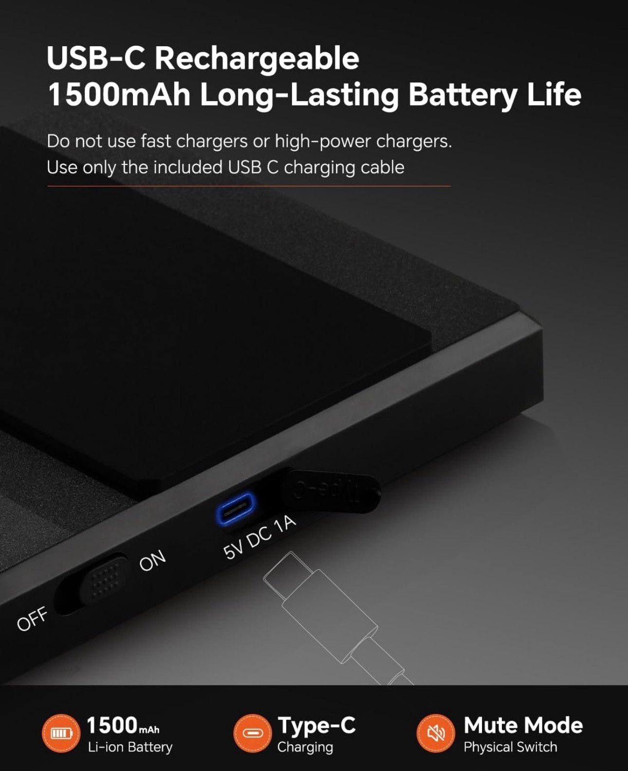 - USB-C Charging & Energy Efficient: Powered by a larger 1500mAh battery, rechargeable via USB-C, provides up to 72 hours of use,even in busy cafe. Auto shut-off after 2 minutes conserves power, while dual activation (side switch + touchscreen)