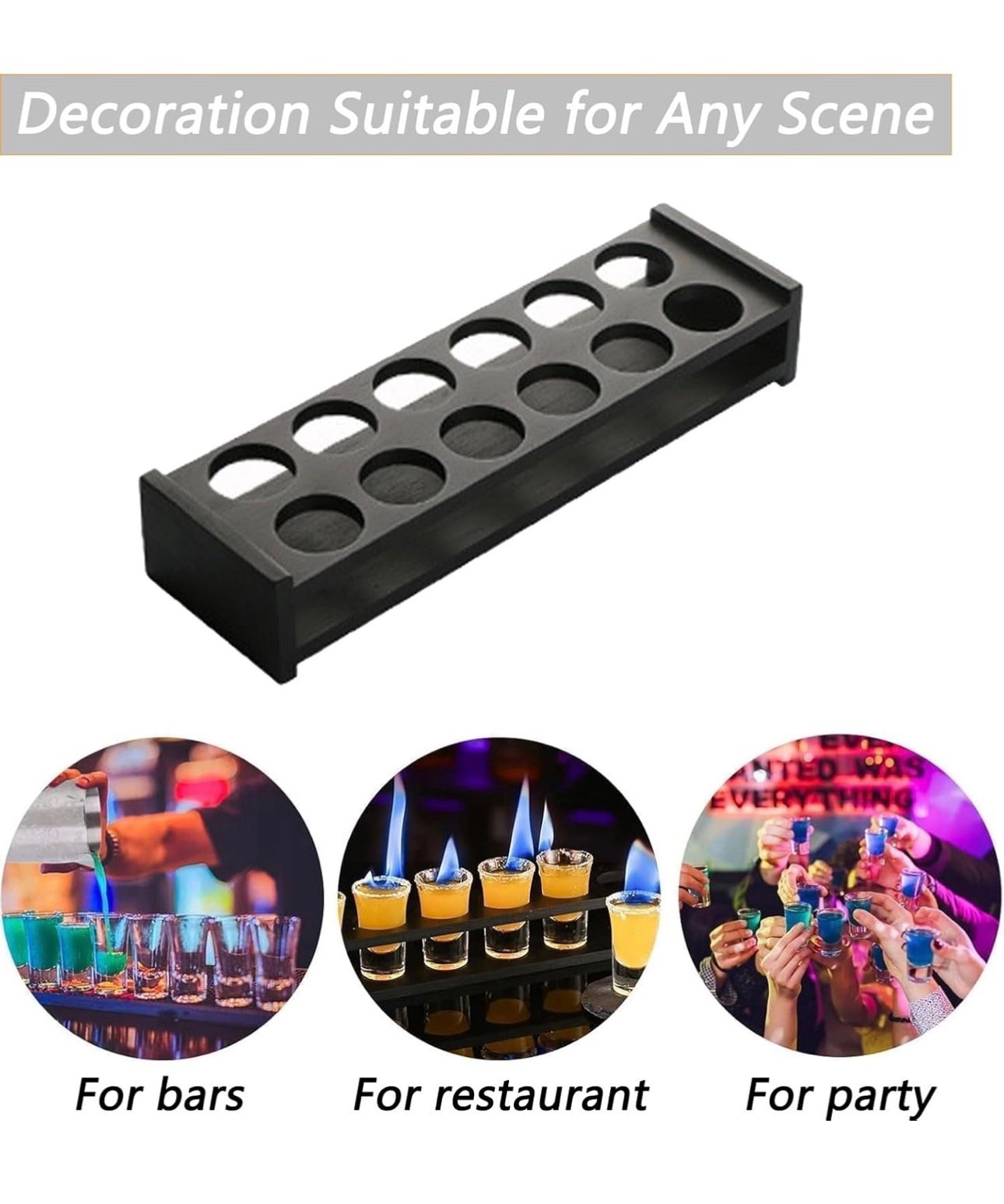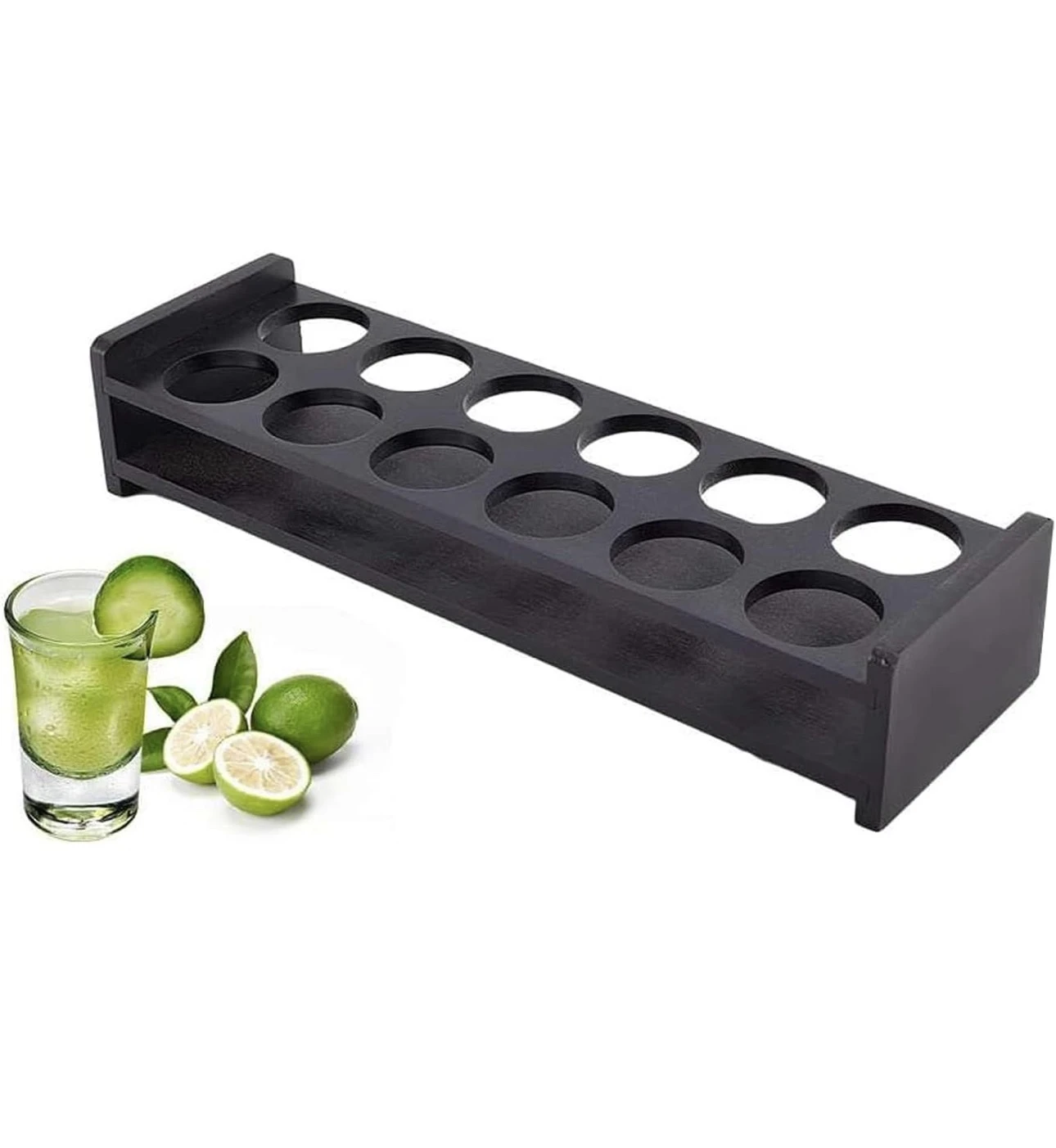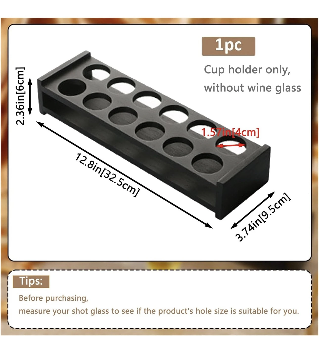 Shot Glass Holder Tray Bamboo Serving and Storage Display for Bar Accessories – 12-hole (Only Tray, Cups Not Included)