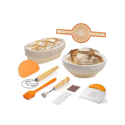 - Complete accessories & simple operation. This sourdough starter kit are specially designed to make the starter process easier, and suitable for amateurs and experts. The kit has a long-handled spatula, temperature sticker, feeding indicator strip, breathable cloth cover, and aluminum lid.