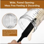 - Large capacity & easy to use. The sourdough jar has a 24 oz capacity and makes 3 sourdough loaves. You can easily add flour and water to this wide-mouth glass jar and remove the starter when needed. A spatula aids in the efficient stirring, and a temperature sticker helps you monitor the starter temperature in real-time. The Date/time feeding tape helps you keep track of time. Easy to observe and clean (dishwasher safe).