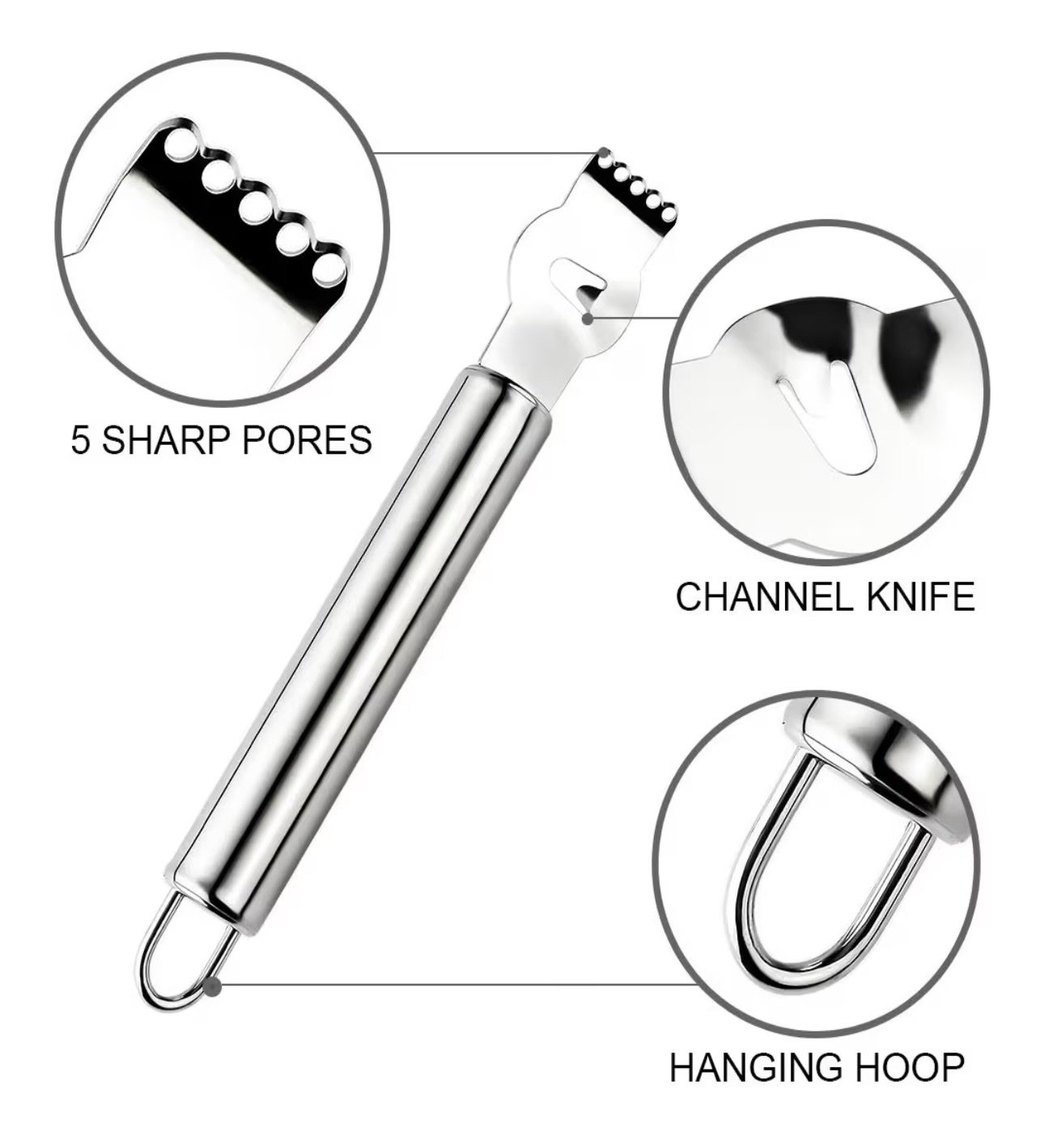 - ❋STAINLESS STEEL LEMON ZESTER: Features five sharp pores, built-in channel knife, good grip hangle,made from stainless steel, durable & sturdy;