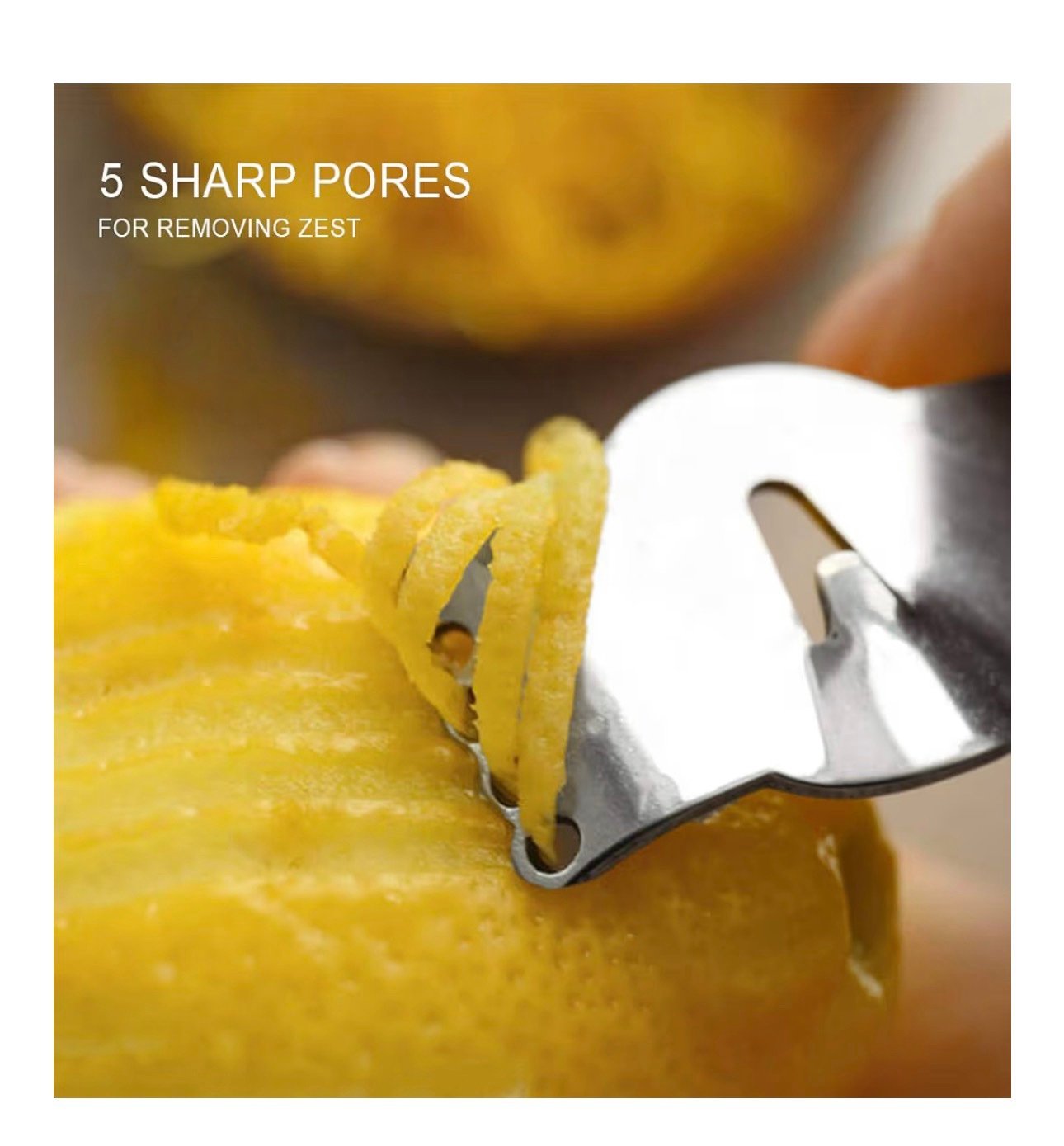 - ❋2 IN 1 PURPOSE: 2 usages in 1 utensil, 5 sharp holes easily zest from a lemon when making pies; built-in channel knife makes some lemon swirl, beautiful garnishing twists;