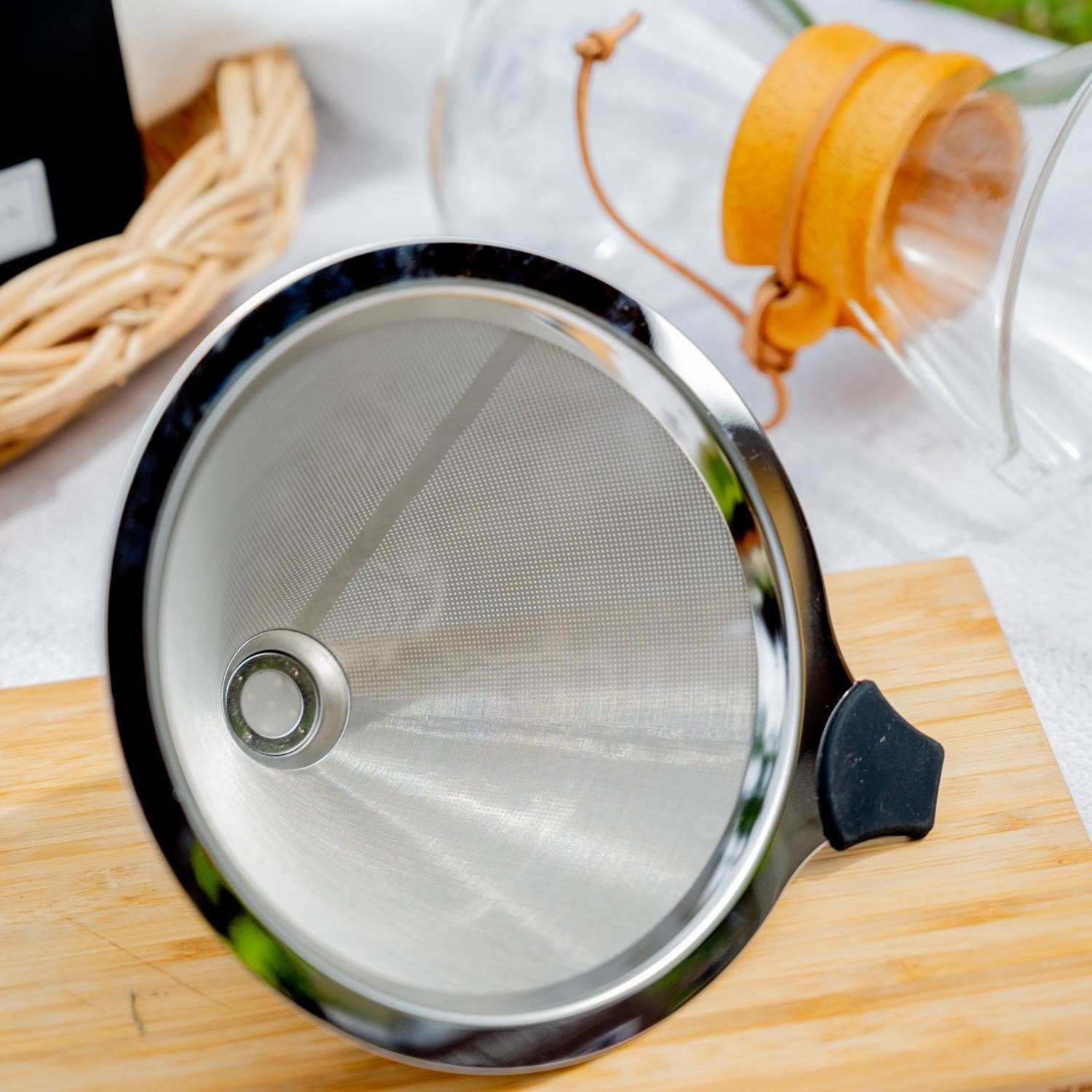Richer coffee is just one pour away with our reusable metal coffee filter. It keeps out grounds but allows flavorful oils to pass through for delicious full-bodied coffee. This reusable metal coffee filter is made from premium grade 304 stainless steel. Reusable and sustainable.