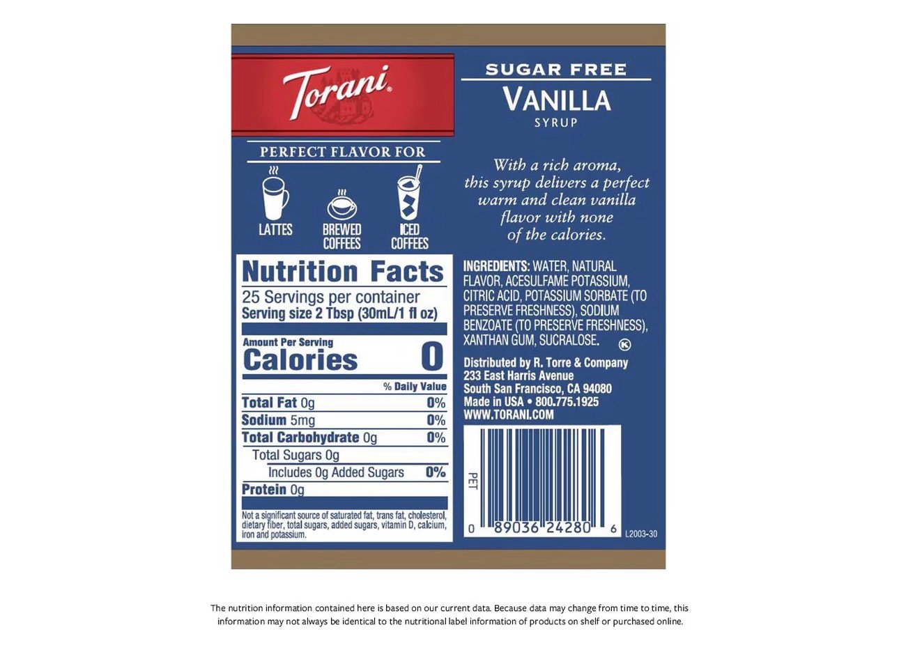 Be the first to review “Torani Vanilla Sugar Free Syrup, 750ml” Cancel reply