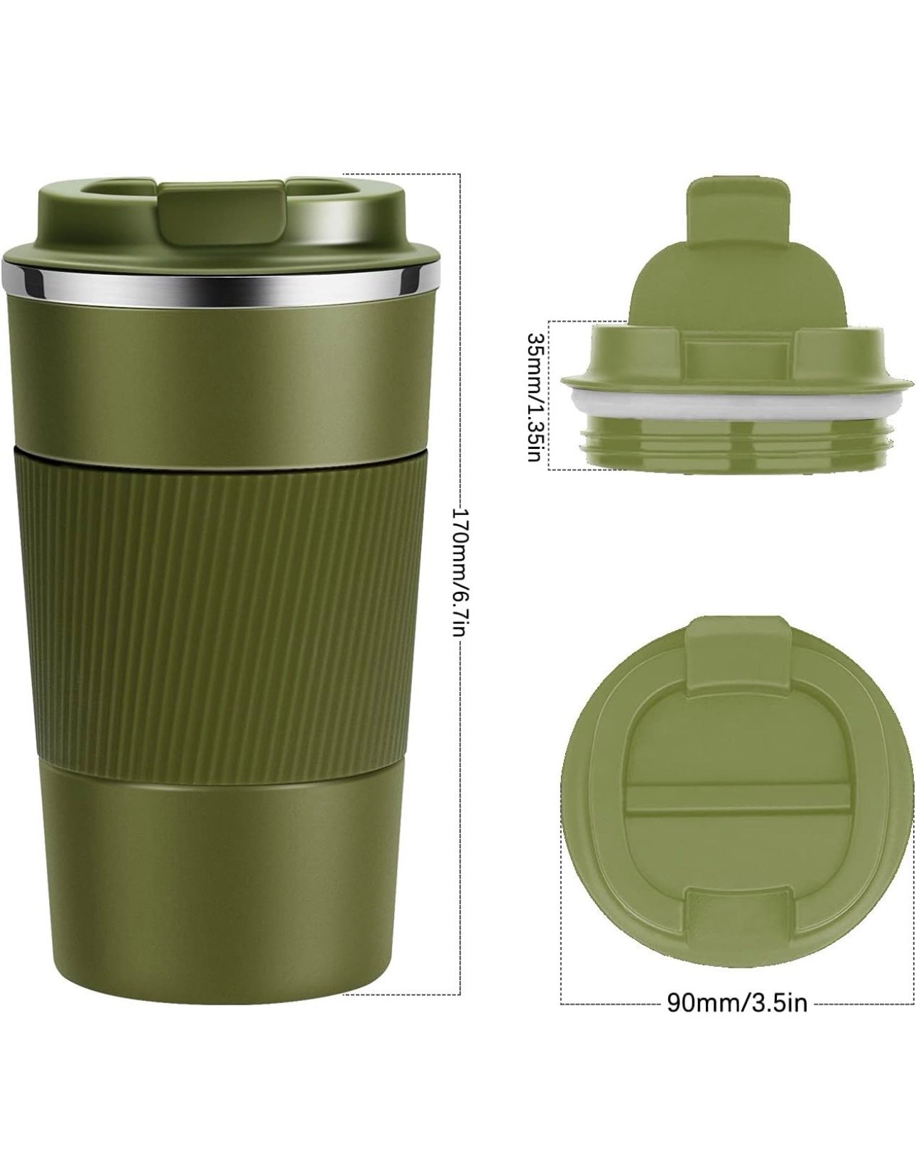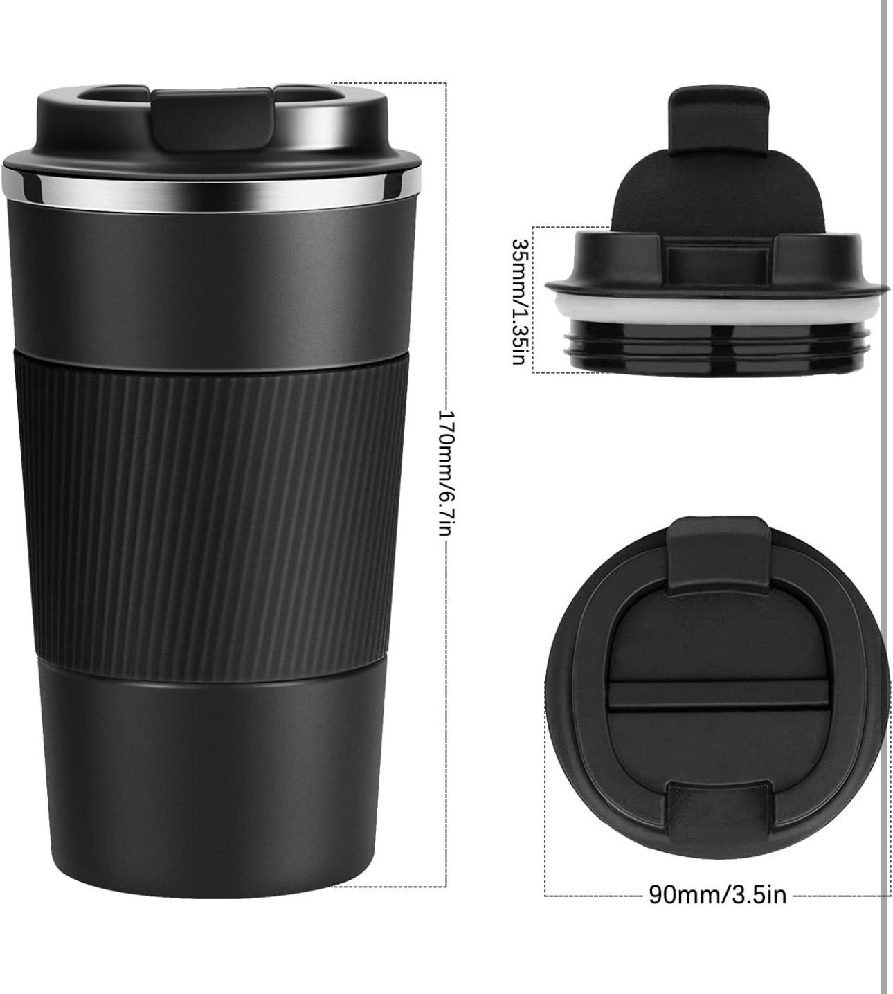 • Non-slip Grip & Bottom Design — Matte, silicone cup body not only make the mug looks elegant, but also offers a comfortable way to hold. And the rubber bottom helps to prevent the coffee mug from sliding and tipping over. Besides, the bottom diameter of the cup is 70mm, special designed for car usage