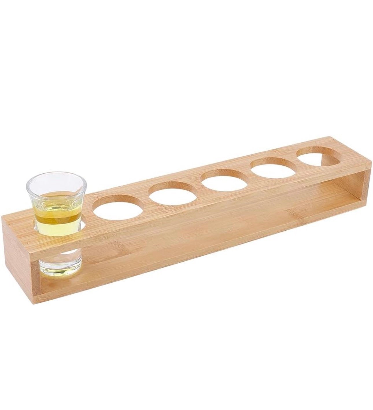 - Wooden Shot Holder: This 6 shot glass tray is made of natural wood, and is of excellent workmanship, its surface is smooth without any burrs, and it is sturdy and durable, unlikely to be damaged, can be used for a long time